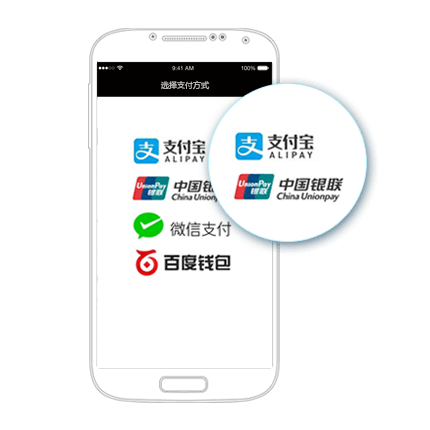 聚合支付,为iOS/Android原生/H5 App提供支付解决方案:支持微信支付、支付宝支付、银联手机支付、百度钱包等。